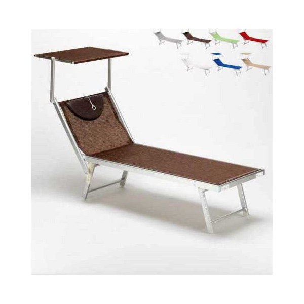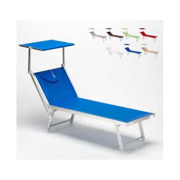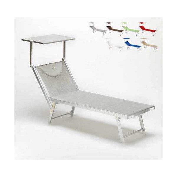 Professionelle Sonnenliegen Santorin am Meer, mit Sonnendach, komplett aus Aluminium, beständig gegen Witterungseinflüsse, Stahloberflächen zum besten Preis-Leistungs-Verhältnis.