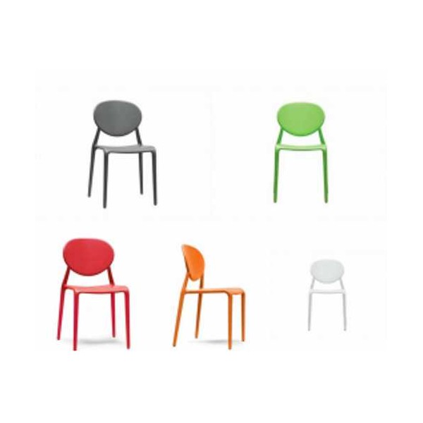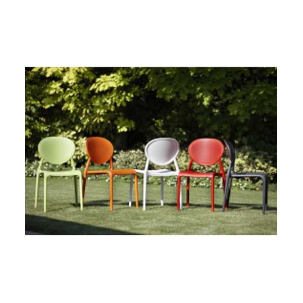 Günstige und moderne Stapelstühle aus Polypropylen für den Außenbereich, Garten, Veranda, Haus, Bar, Pub, Restaurant, Pizzeria, Kinditorei zu dem besten Preis-/Leistungsverhältnis. GIO ist ein ergonomischer SCAB DESIGN Medaillon Stapelstuhl, mit Struktur aus Polypropylen mit Glasgewebe, mit Air moulding Spritzguss.