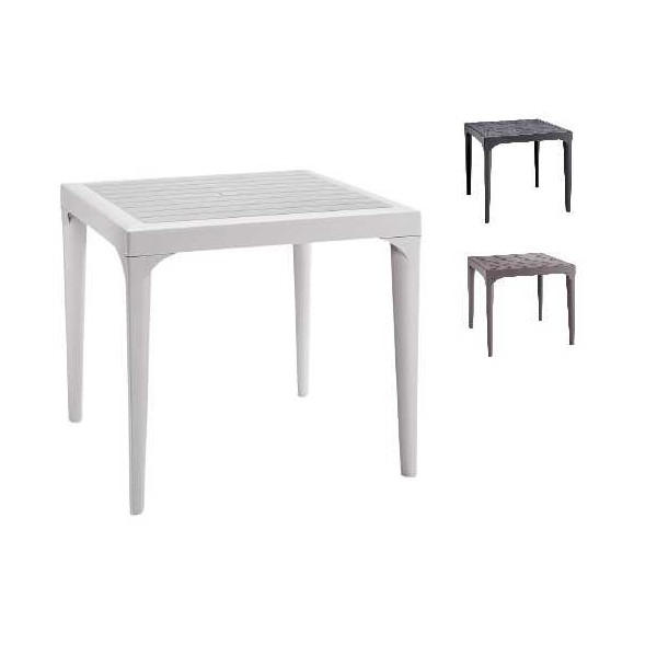 Stapelbarer Tisch aus Polypropylen mit Holzoptik auf der Platte. Modernes Design für Garten, Veranda, Zuhause, Bar, Kneipe, Restaurant, Pizzeria, Konditorei, Catering, Hochzeit zum besten Preis-Leistungs-Verhältnis. Verwendung: Innen/Außen Abmessungen: 80(L) x 80(T) x 74(H) cm Gewicht: 7,3 kg Mindestkauf 4 Tabellen derselben Farbe mit einem Vielfachen von 2 (z. B. 4, 6, 8, 10 usw.)