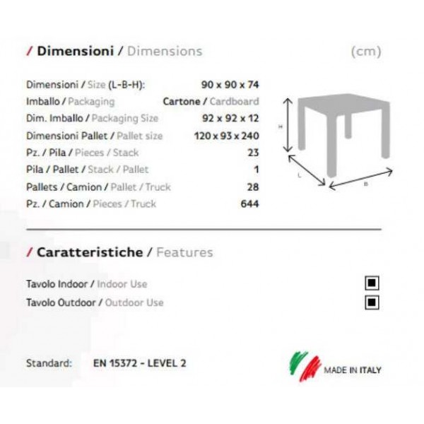TISCH FÜR DEN INNEN- UND AUSSENBEREICH Der aus Polypropylen gefertigte Ares ist ein ausgezeichneter quadratischer Tisch, der sich dank seiner Eleganz für jeden Einsatz im Innen- und Außenbereich eignet. Äußerst solide und robust, zeichnet er sich durch ein einfaches und lineares Design aus, der Tisch Ares ermöglicht es Ihnen, Ihre Räume auf elegante und komfortable Weise einzurichten. Ein einfach zu montierender Tisch, der Komfort, Funktionalität und Design vereint.
