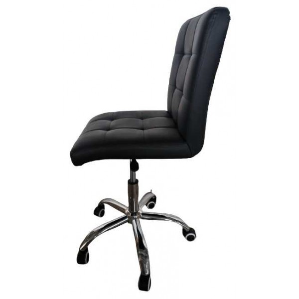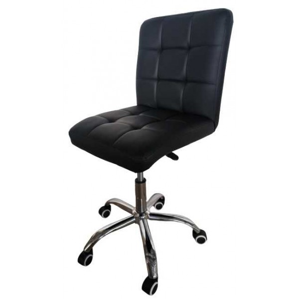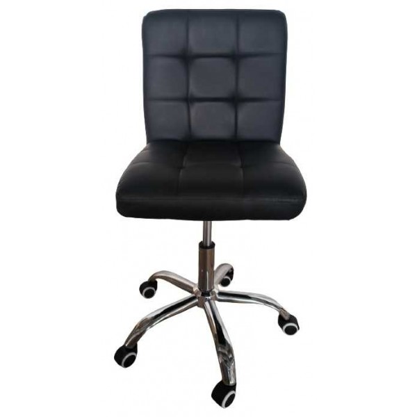 Stuhlhocker mit 5 Rädern, drehbar und anhebbar mit Hebel, verchromte Metallstruktur, gepolsterter Sitz mit schwarzem Kunstlederbezug für Pokerspielräume und Wellness-Profis wie Kosmetikerinnen, Maniküristen, Pediküristen, aber auch für Handwerker und Büros zum besten Preis-Leistungs-Verhältnis Verhältnis.